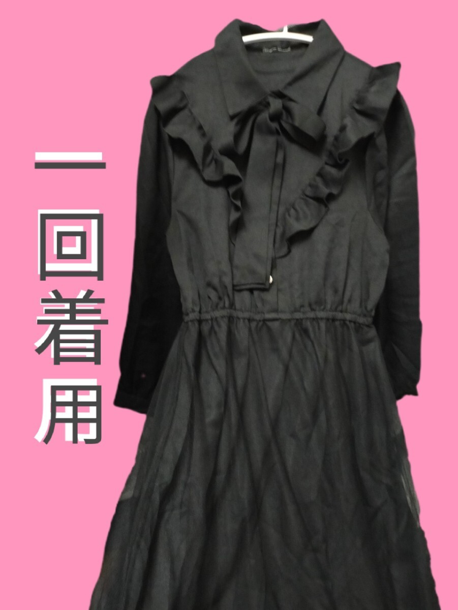 - 【美品】ワンピース マキシ丈 ブラック 長袖 フリル チュール リボン ロリータ ゴスロリ 黒 【新品同様】