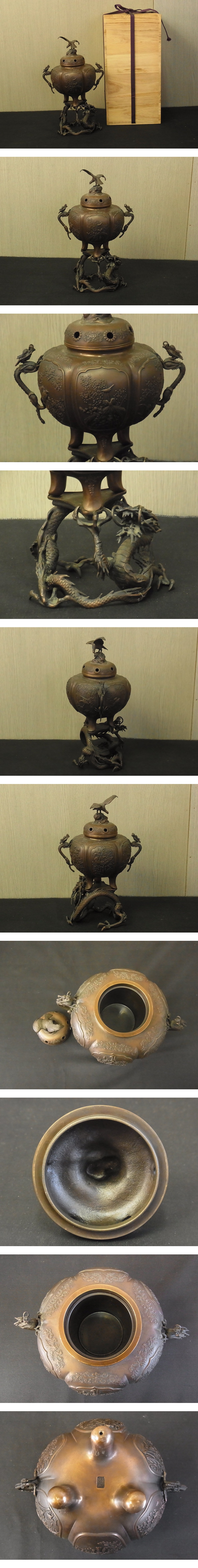 - th063 蔵出 日展工芸家 村田宏 香炉 蝋型鋳銅 在銘 共箱 証書付 金属工芸 高岡銅器 骨董 古美術 銅製 銅器