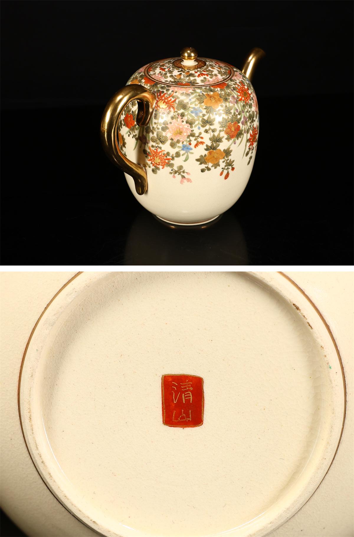 > 【吉】CL310 明治時代 清山作 【古薩摩焼】 金彩百花紋 カップ&ソーサー ティーポット シュガーポット ミルクポット 7点セット 本物保証Z