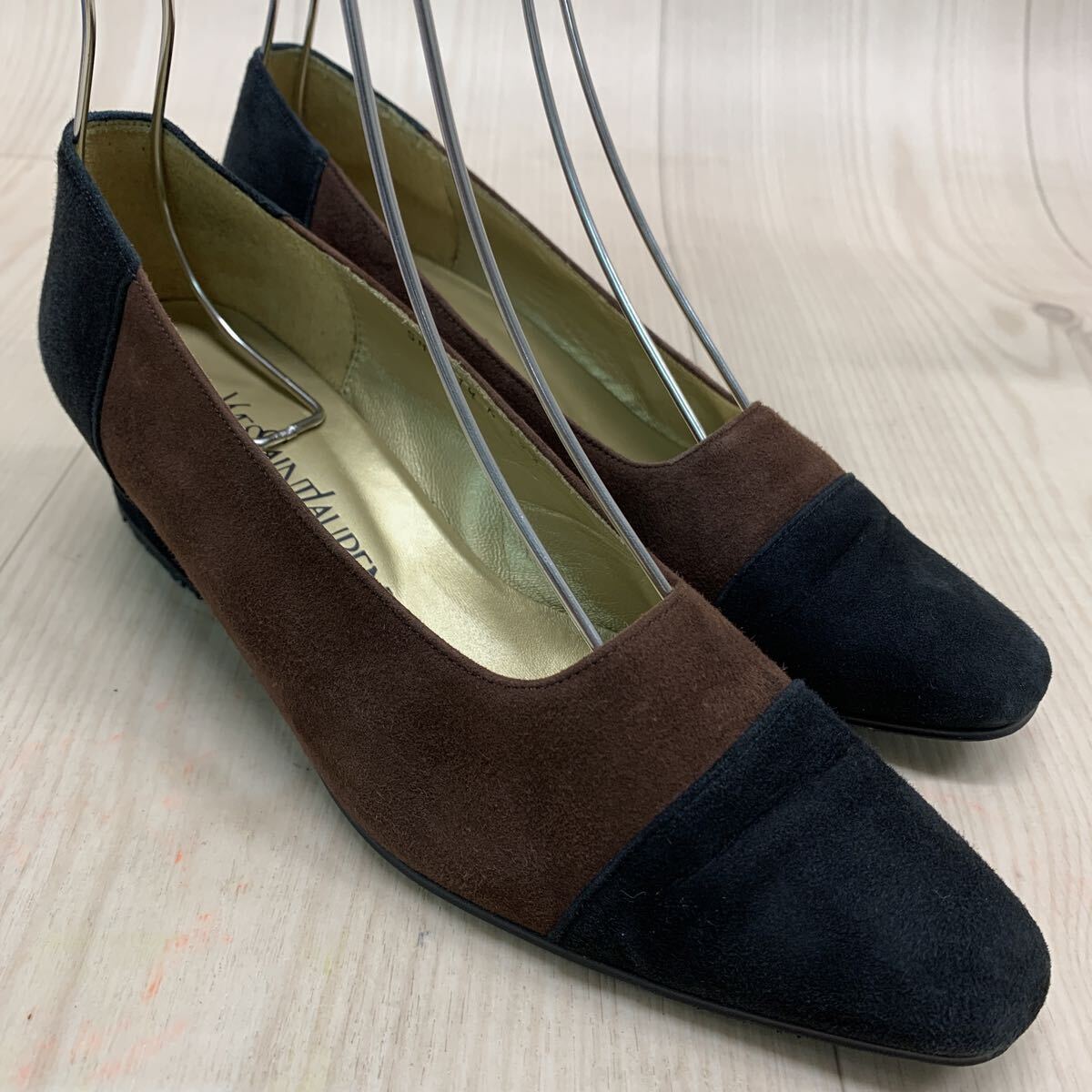- N12 FN-251010-1550 Yves Saint Laurent イヴ サンローラン ツートンカラー スエード パンプス ヒール ブラウン レディース 35 1/2