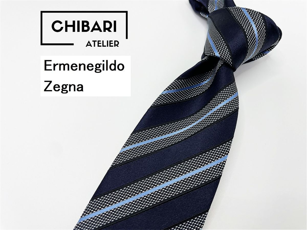 - 【超美品】Ermenegildo Zegna エルメネジルドゼニア レジメンタル柄 ネクタイ 3本以上 送料無料 メンズ ブラックネイビー 光沢 1002045