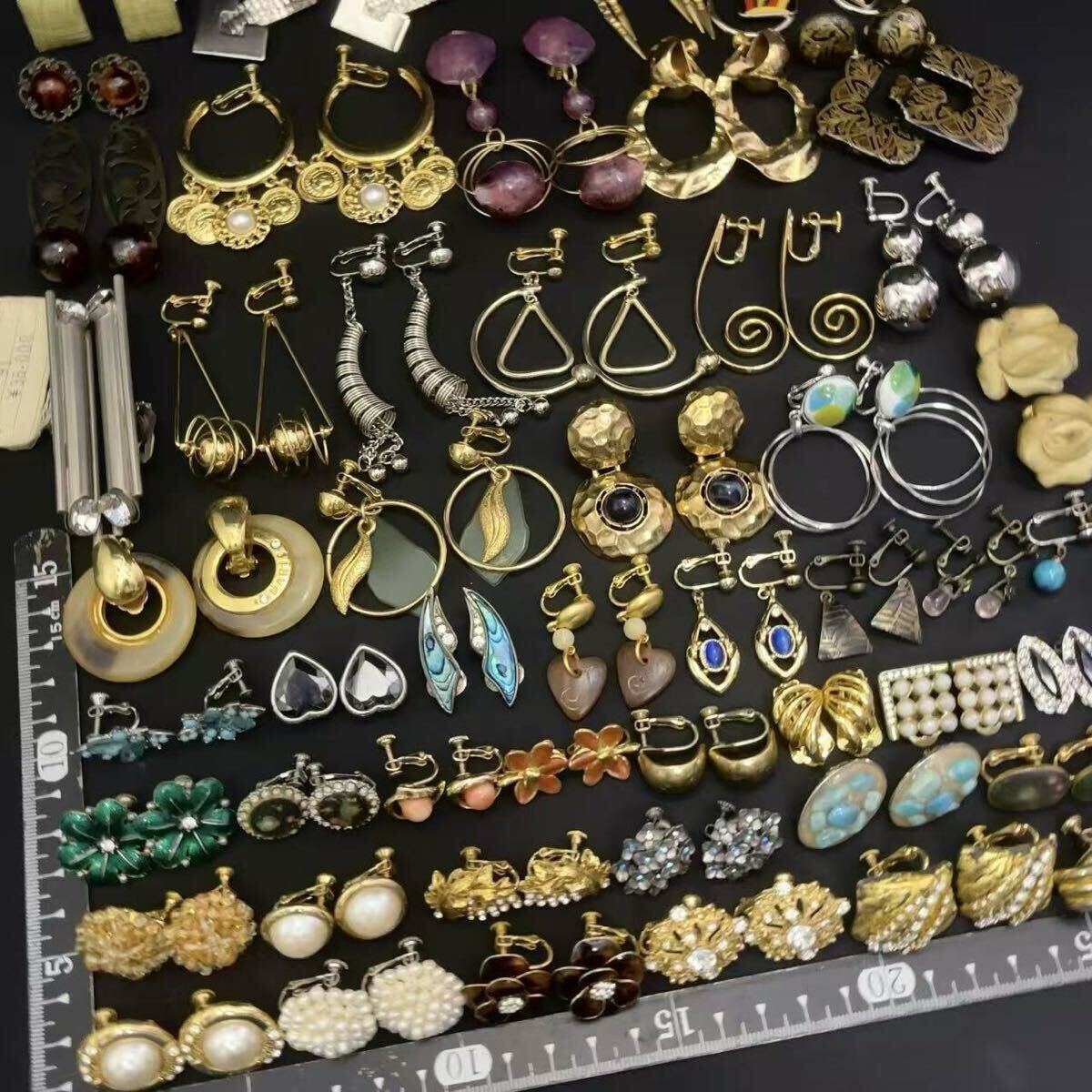 > 1円 大ぶり イヤリング 50ペアまとめて 真珠 パール 七宝焼 天然石 珊瑚 カラーストーン/Gianni Versace ジャンニヴェルサーチ/AK II等含む