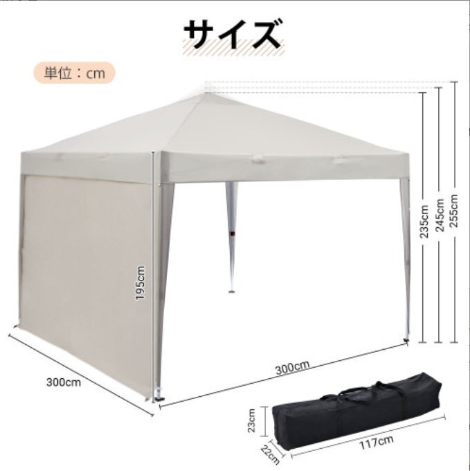- タープテント 3m サイドシート1枚付 UV加工 撥水 ワンタッチタープテント 簡単 大型