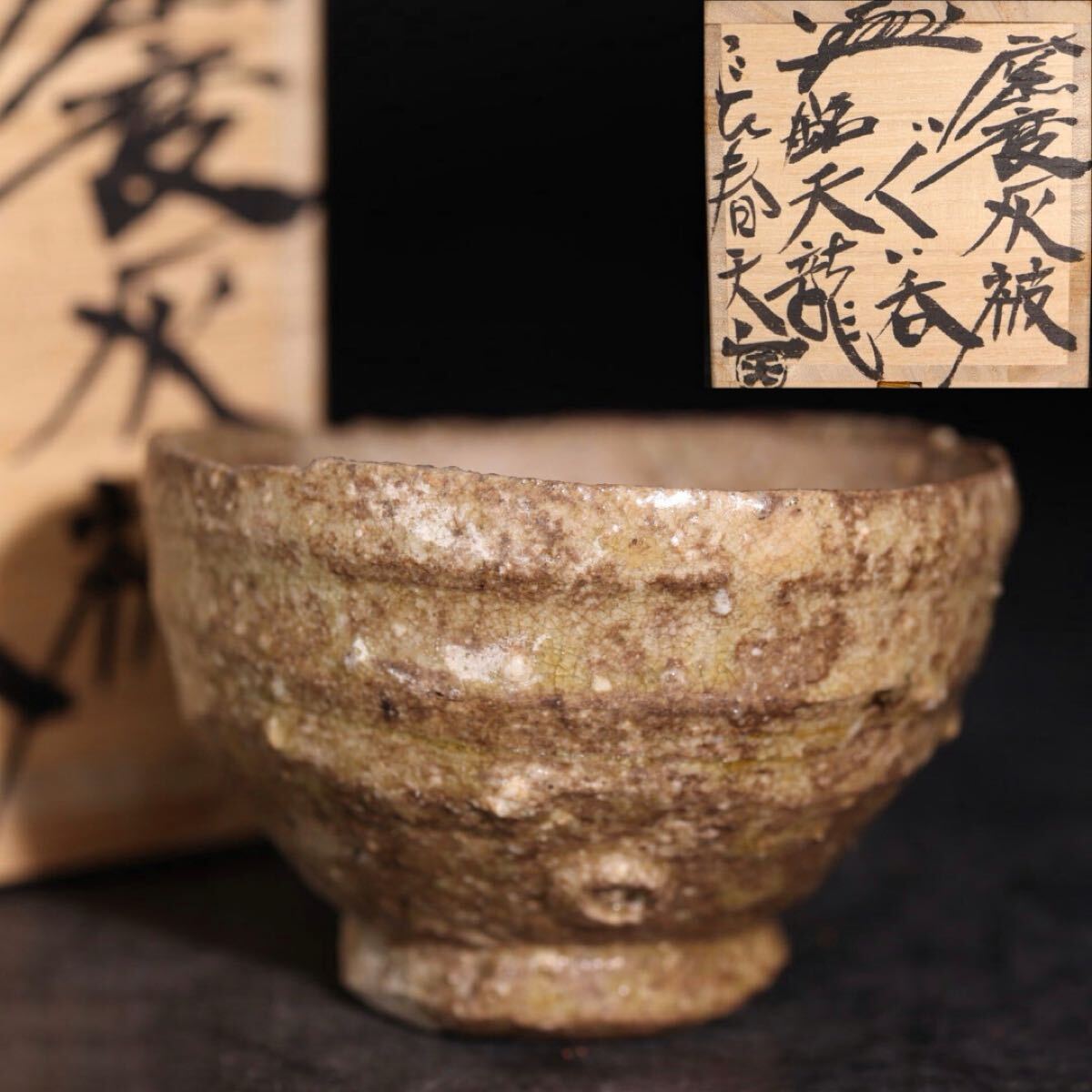 > 長春天山 造 「 窯変 灰被 ぐい呑み 銘: 天龍 」 共布・共箱付 / 酒器 盃 杯 茶器 煎茶道具 .G2924