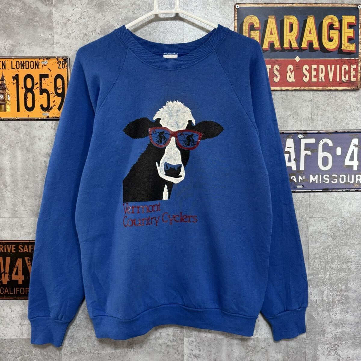 > FRUIT OF THE LOOM USA製 Vermont Country Cyclers スウェット L ブルー アニマルプリント 牛 80s〜90s