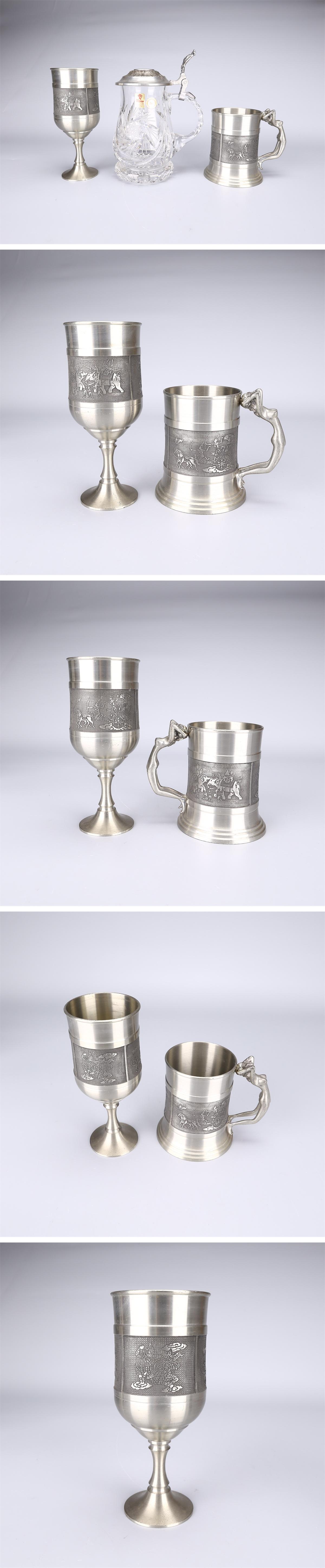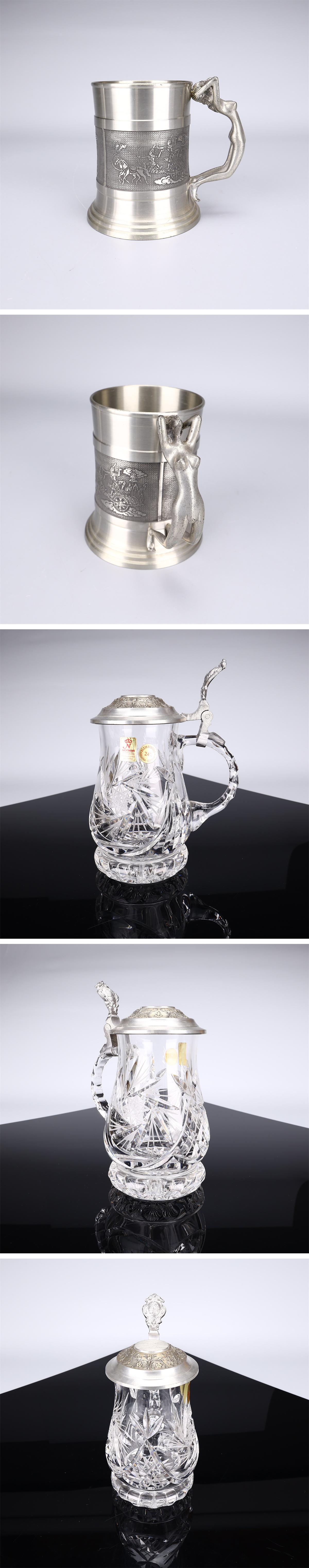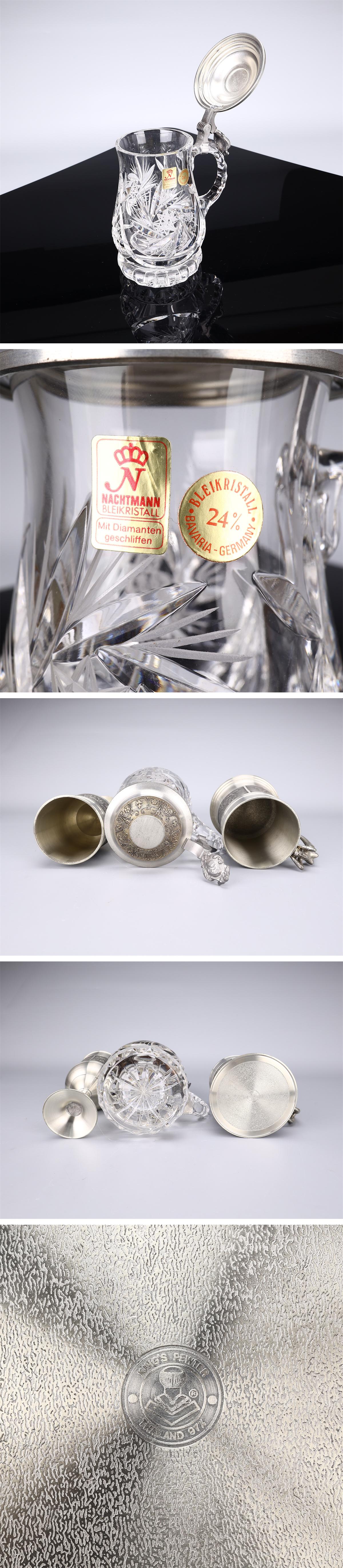 【吉】DA896 時代 【錫製】 クリスタルガラス ワイングラス マグカップ ビアジョッキ 3点 一括出品/美品!拍卖