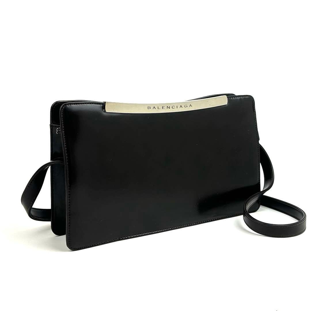 - 美品■BALENCIAGA バレンシアガ ショルダーバッグ BB シルバー金具 裏地総柄 斜め掛け レザー ダークブラウン 焦茶色 男女兼用 フォーマル