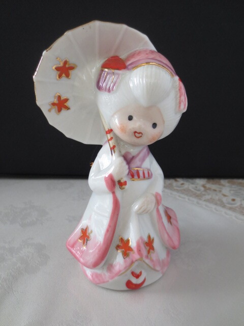 - 京都・舞子さん人形・陶器・紅葉・傘・揺らすと音が鳴る・置物 飾り