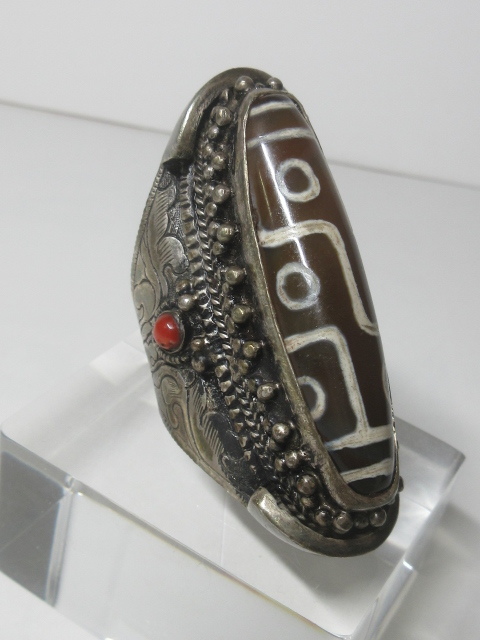 > ★アンティークリング「チベット瑪瑙&山珊瑚」★指輪・スターリングシルバー925製・20号★骨董/レア/ビンテージ/レトロ/コレクション★