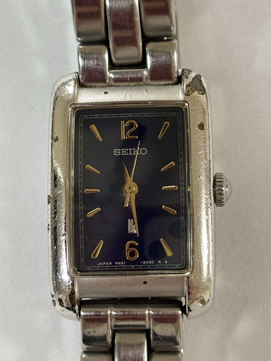 > SEIKO セイコー QZ 4N21-5260 ルキア 紺文字盤 レクタンギュラー レディース腕時計 シルバー スクエア LUKIA 金属ベルト 未稼働品