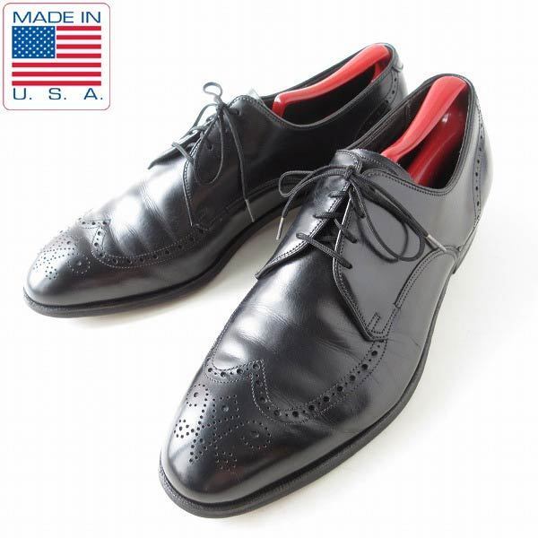> 80s USA製 wright Breather ウィングチップ シューズ 黒 10.5D 28.5cm 外羽根 メダリオン 大きいサイズ 靴 d143-32-0093ZV
