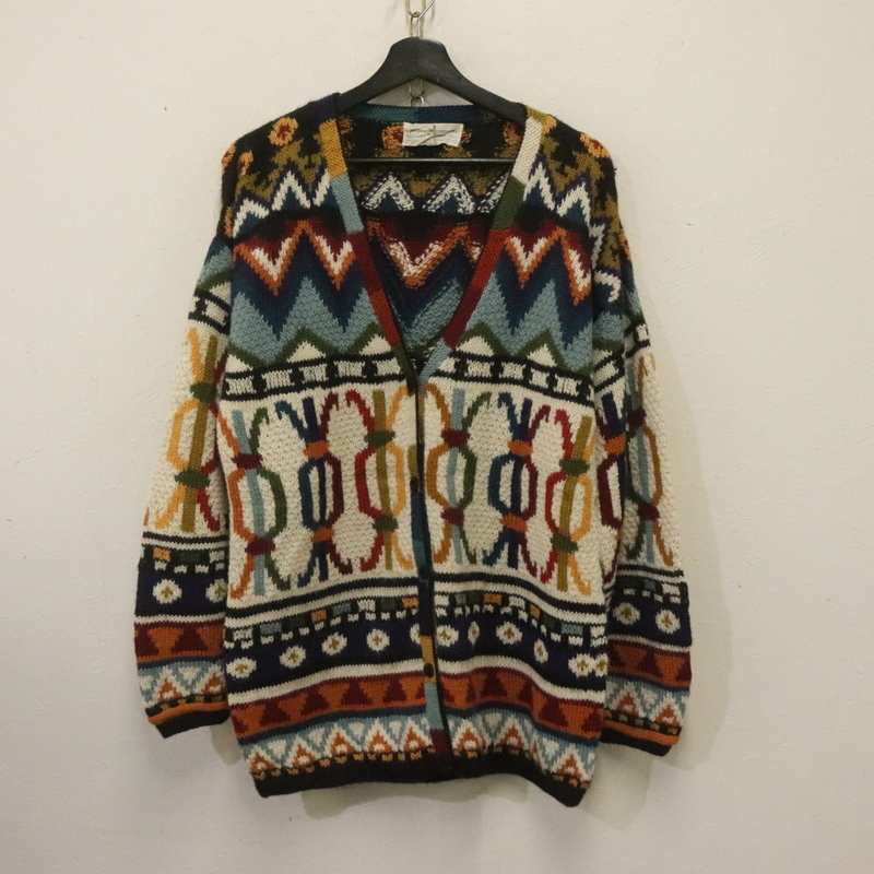 > U93 90sビンテージ THE PERUVIAN CONNECTION アルパカニットカーディガン■1990年代製 表記Mサイズ レディース アイボリー 柄