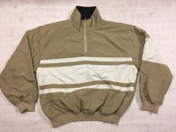 - ジャックニクラス Jack Nicklaus レトロ トラッド ゴルフ ハーフジップ ボーダー ハイネック プルオーバージャケット メンズ L ベージュ