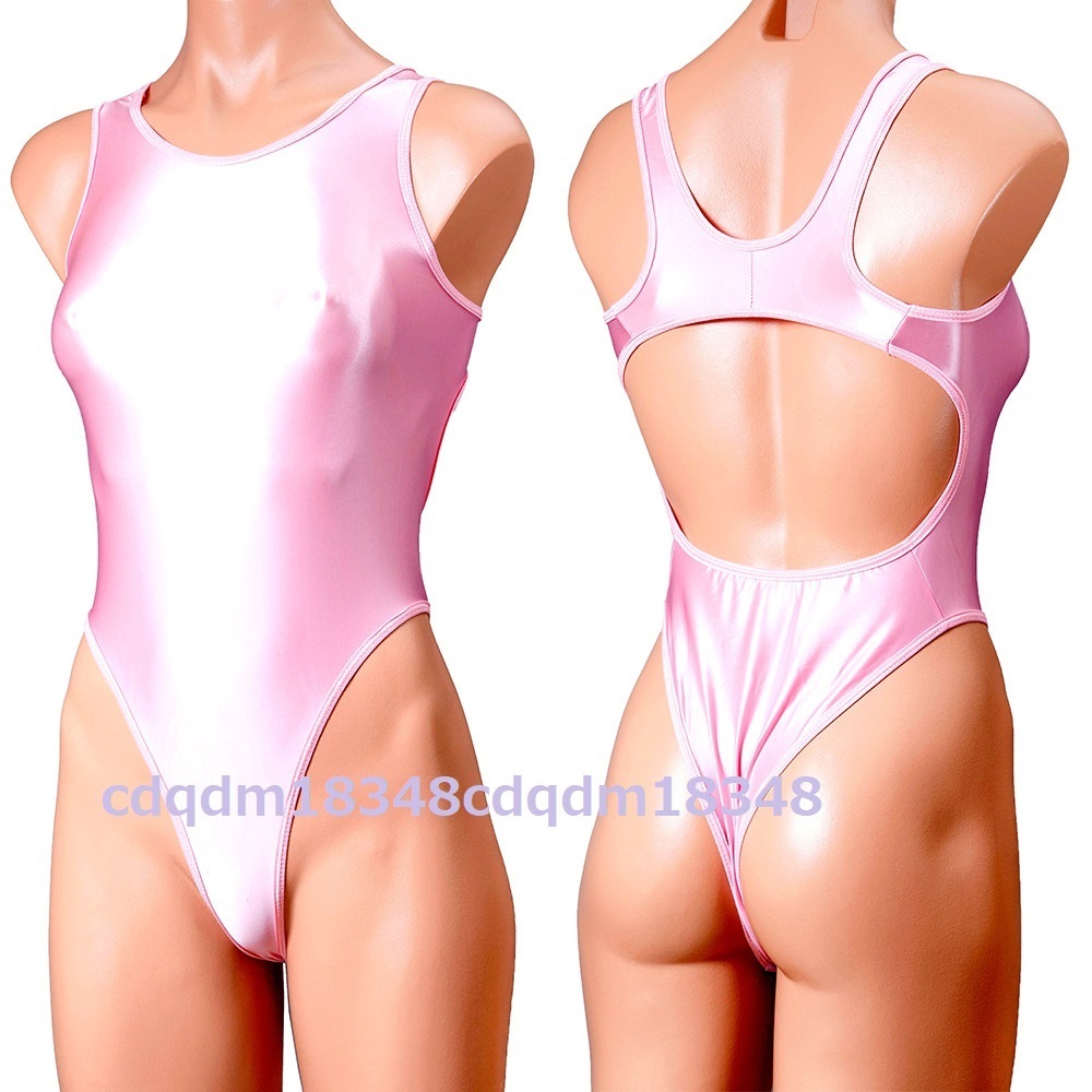 - 6321 PINKカラー シャイニー ストレッチ クロッチフック仕様 ハイフォークホルター ジャンプスーツ ボディスーツ