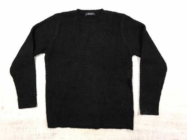 - ナノユニバース nano・universe トラッド レトロ セレショ系 ジャガード 模様編み クルーネック ニット セーター メンズ M 黒