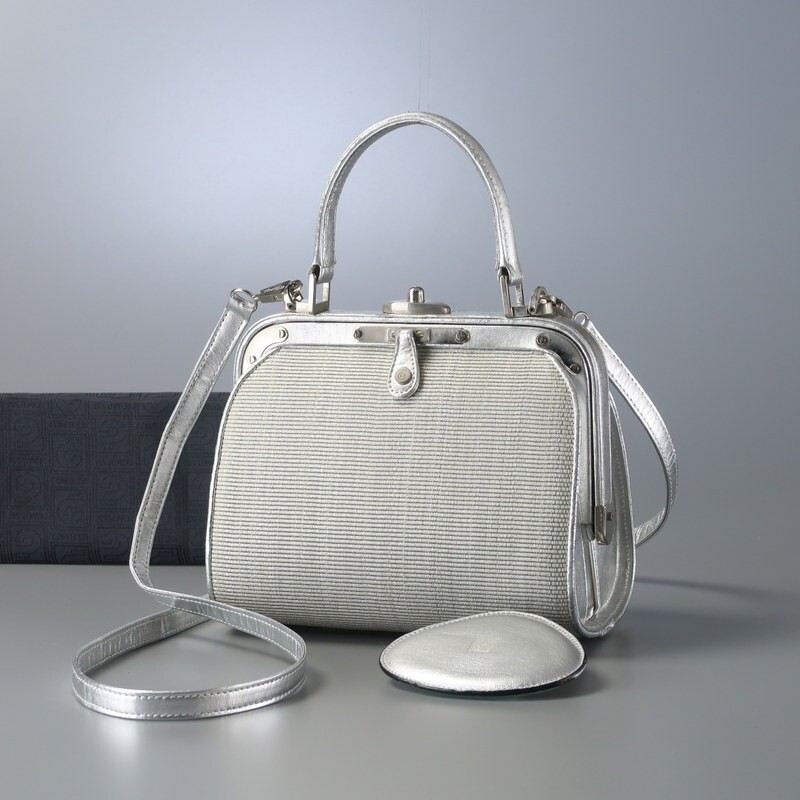 > GS4412■ドイツ製 COMTESSE コンテス ホースヘアー×レザー ハンドバッグ ショルダーバッグ 手提げ 肩掛け 斜め掛け 鞄 2way シルバー系
