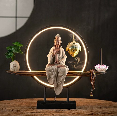 - 禅意灯圏観世音菩薩仏像置物アイデア巻き戻し香炉家庭客間玄関装飾
