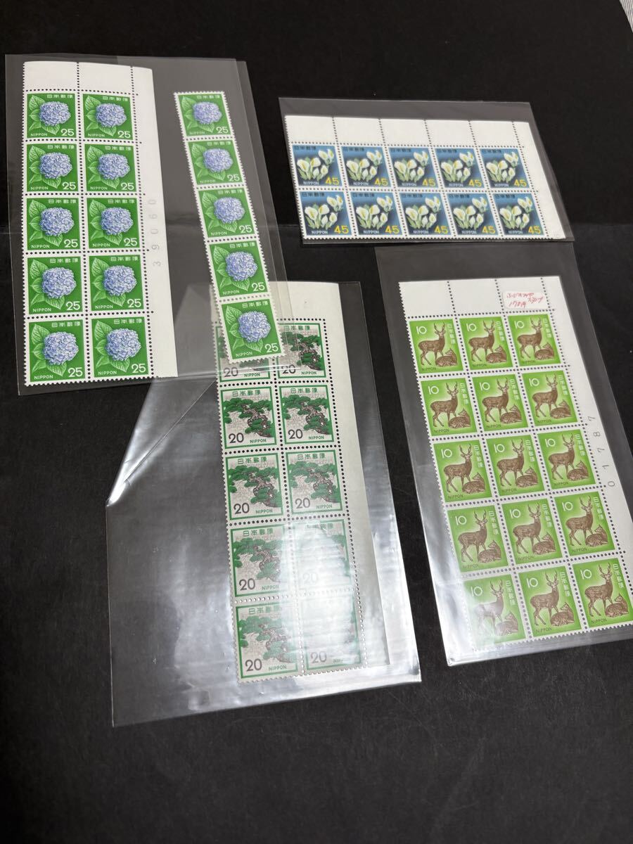 > ブロック 4セット 紫陽花 水芭蕉 鹿 松  日本切手 切手  昭和切手 コレクション品 他にも多数出品中 ローマ字