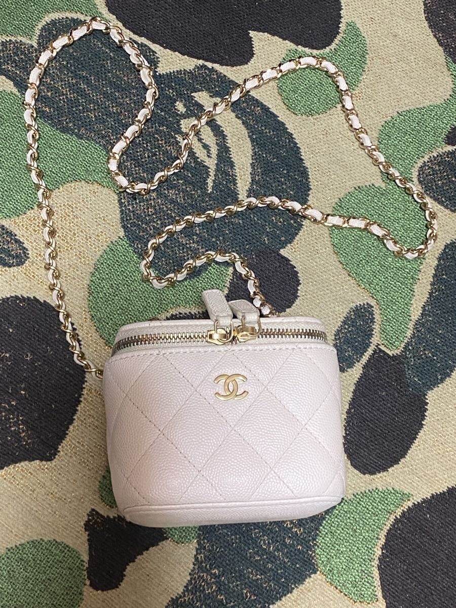 > CHANEL ミニバニティバッグ シャネル チェーンバッグキャビアスキンホワイト ショルダーバッグ