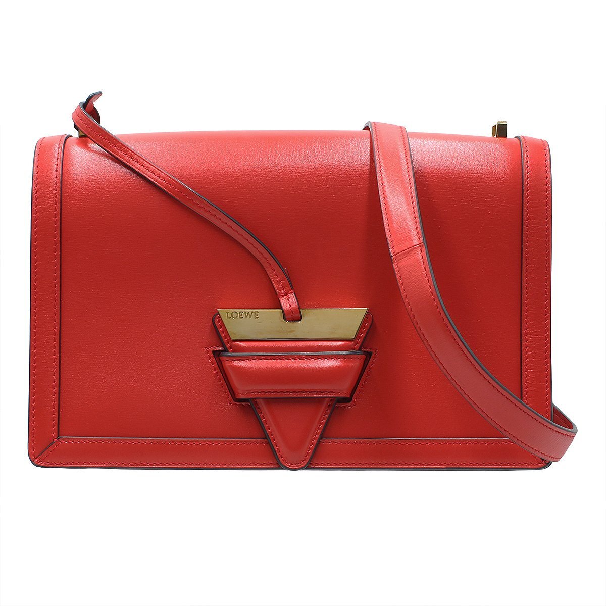 ★R2074 美品 ロエベ Barcelona バルセロナ レザー ショルダーバッグ レッド×ゴールド金具 LOEWE レディース★