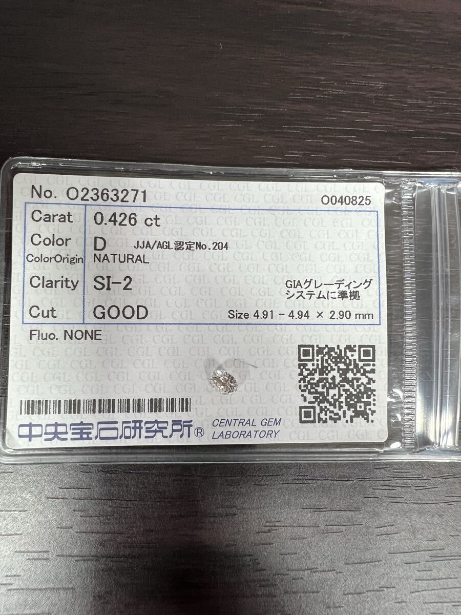 - 1円 ダイヤモンド ルース 0.426ct D SI-2 Good EG2085
