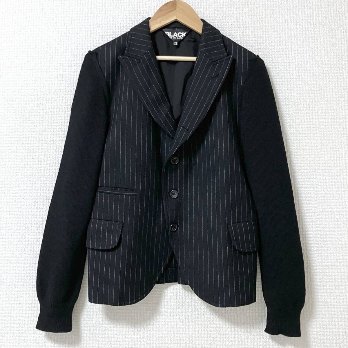 > AD2014 BLACK COMME des GARCONS ストライプ ウール 袖ニット ドッキング ジャケット 黒 XSサイズ コムデギャルソン archive 5020242