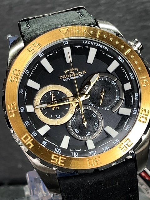 - 新品 TECHNOS テクノス 腕時計 正規品 アナログ腕時計 クオーツ クロノグラフ 日常生活強化防水 レザーベルト メンズ ブラック プレゼント