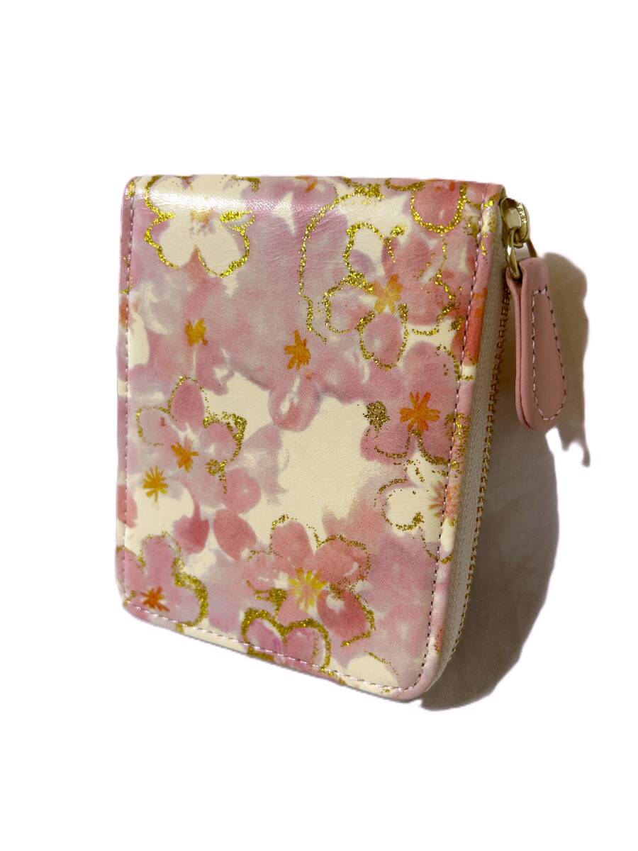 - ①【未使用】本革 花柄 ラウンドファスナー 財布 レザー サイフ コインパース 小銭入れ