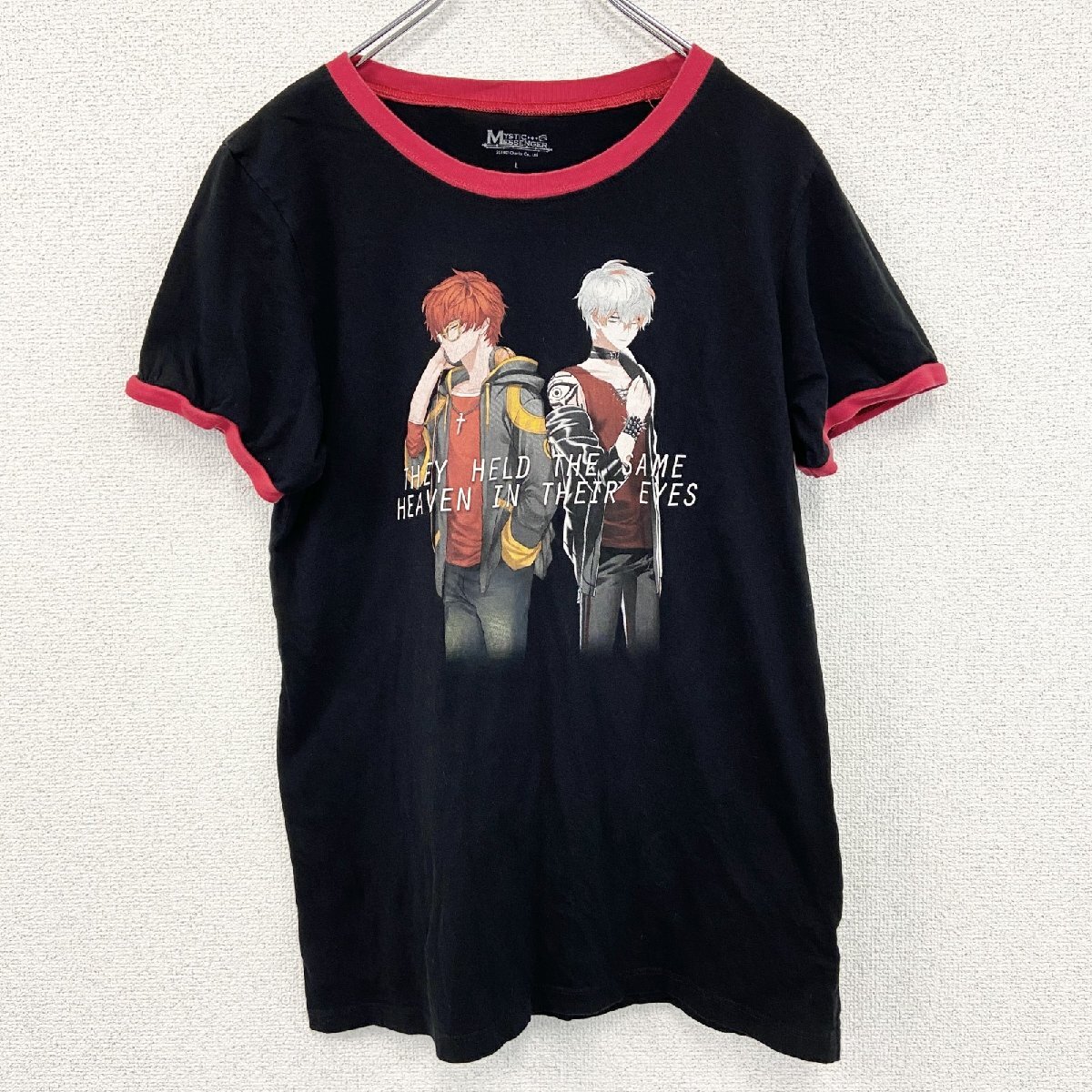 - 古着 used 半袖リンガーTシャツ ミスティックメッセンジャー 韓国 乙女ゲーム 黒 ブラック 100%コットン Lサイズ