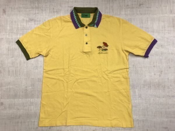 > セベ バレステロス Seve Ballesteros 鹿の子 ロゴ刺繍 ゴルフ スポーツ オールド レトロ 半袖ポロシャツ メンズ L 黄色
