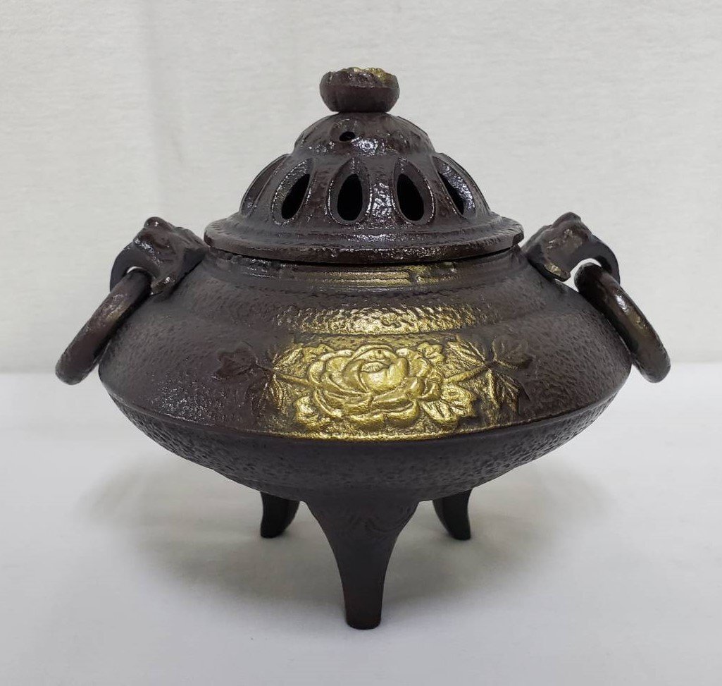▽香炉 牡丹 南部鉄器 未使用▽007988