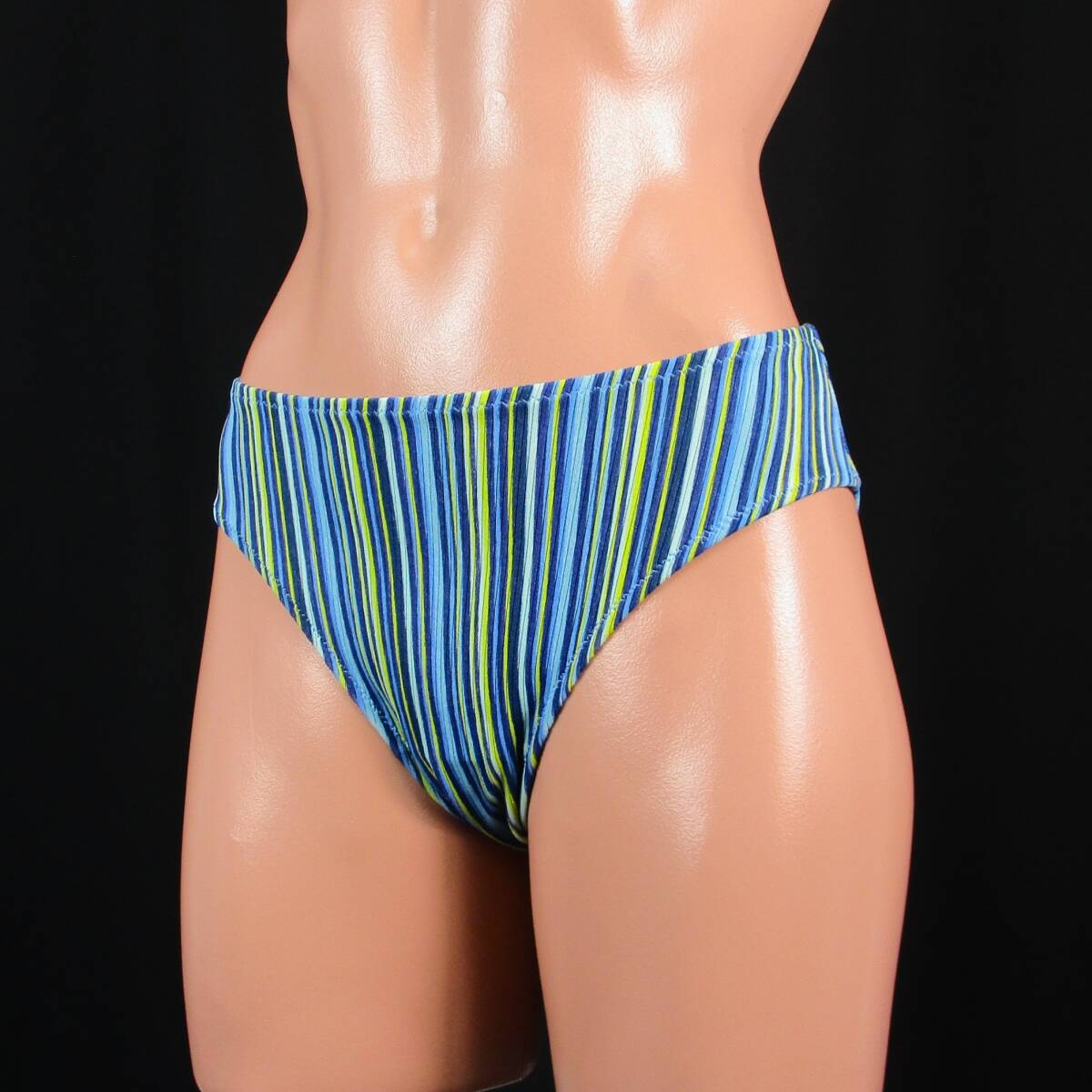 > E9724★ストライプ柄 ブルー系 青 水着 ボトム ビキニ パンツ レディース 9M 日本製 ハイレグ スイムショーツ 水泳 プール ビーチ 海