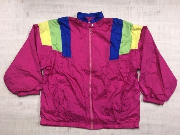 - MILANO SPORT レトロ オールド スポーツ 古着 配色切替 タブカラー ウィンドブレーカー ジャケット レディース ナイロン100% L ピンク