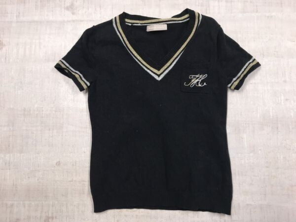 > Madame Hiroko マダムヒロコ レトロ モード ブティック チルデン 半袖 コットンニット トップス カットソー レディース Vネック M 黒