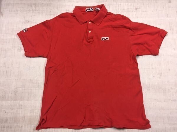 - USA製 フィラ FILA アメカジ ストリート 90s スポーツウェア オールド レトロ 古着 半袖ポロシャツ メンズ L 赤