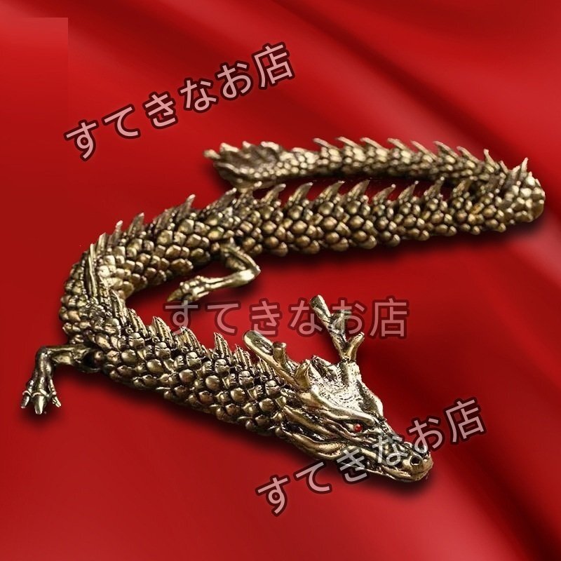 - 工芸品 金属工芸 銅製 龍置物 龍の縁起物置物 密彫刻 車内置物長さ42cm