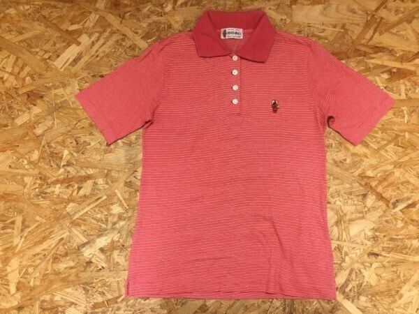 > ANSHING アンシング SUMMIT 半袖ポロシャツ レディース ボーダー 民族ラガーマンキャラクター刺繍 オールドレトロ 赤