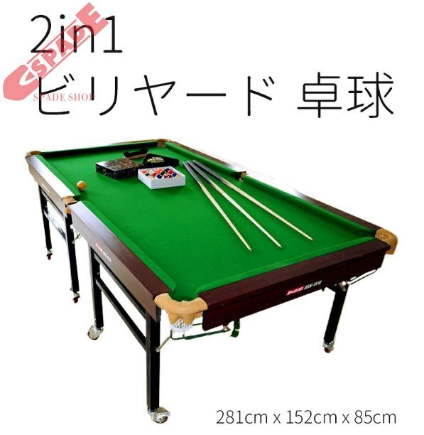 - 2in1 ビリヤード 卓球 マルチゲームテーブル 折りたたみ 9フィート ビリヤード台 卓球台 滑車輪 室内 家庭用