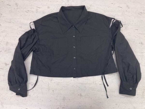 - FOREVER21 フォーエバー21 オフショルダー 肩出し ギャル モード クロップド ショート丈 変形 長袖シャツ トップス レディース F 黒