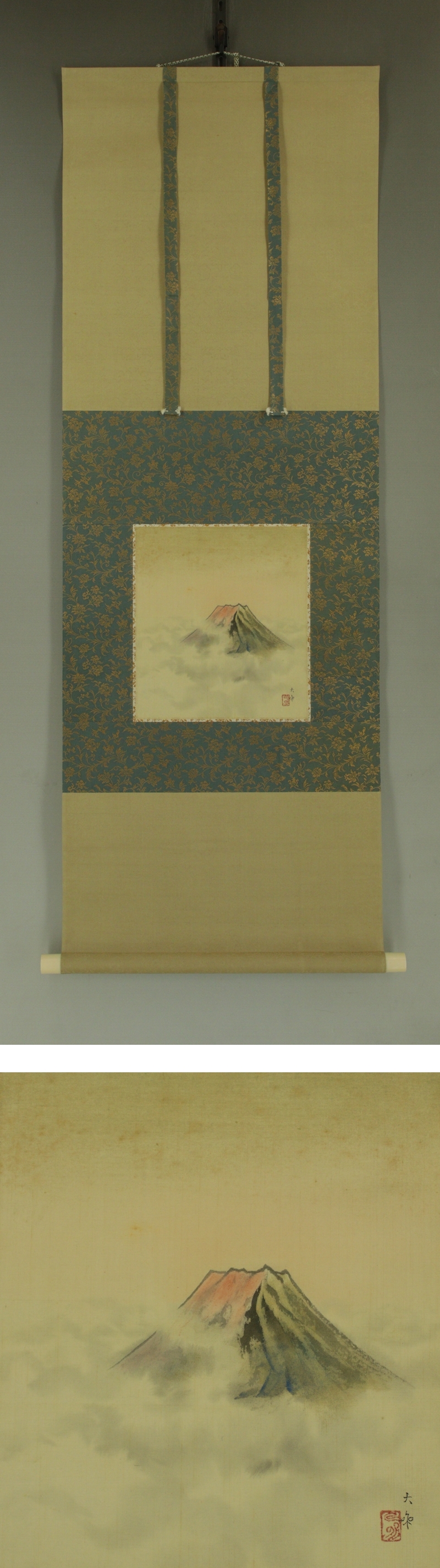 - 【真作】青木大乗【暁の富士】◆絹本◆共箱◆掛軸 r08002