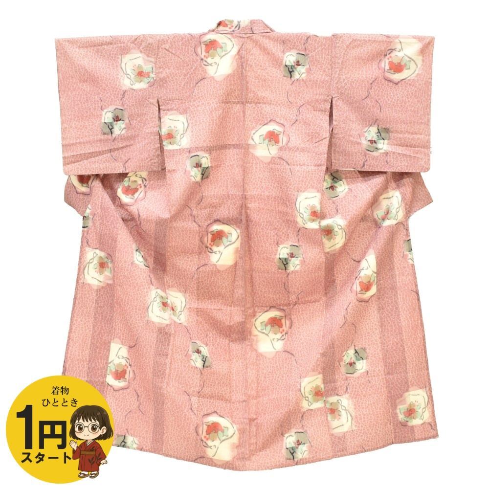 - 1円 アンティーク着物 銘仙 単衣 正絹 身丈148cm リサイクル 同梱可 【着物ひととき】 50677