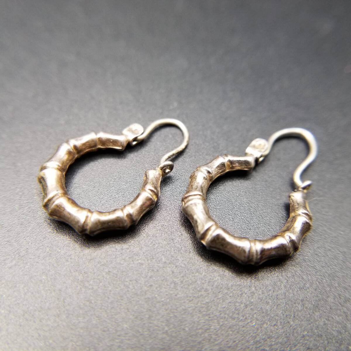 - 竹のような ラウンド リング ヴィンテージ フープ ピアス シルバートーン 小ぶり レトロ Y25-G