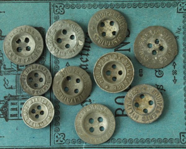 EQUIPEMENT MILITAIREの刻印メタルボタン10個です。