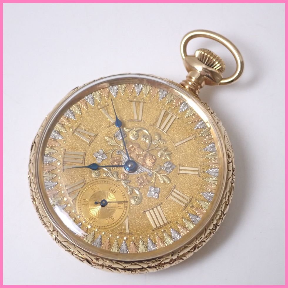 - ★WALTHAM/ウォルサム 72モデル 手巻き 懐中時計/ゴールド/マルチカラーダイヤル/スモセコ/ホールマークあり/ジャンク扱い&1995400031