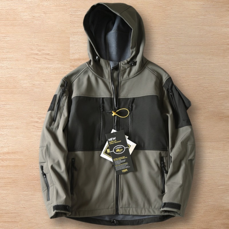 - Y852-M グレー 新品 ソフトシェルジャケット アウトドア 裏起毛 フード付き 防風 秋冬 暖かい 防寒 バイカラー アウター メンズ トップス