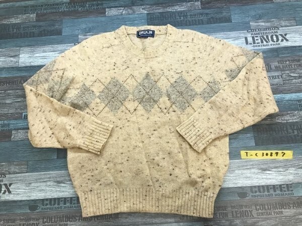 - CALAJA メンズ アーガイル ニットセーター M ベージュ杢グレー