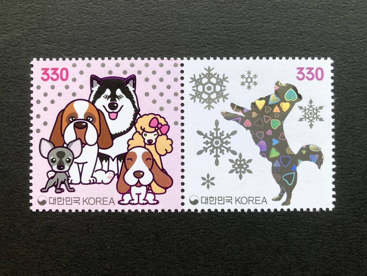 - 外国切手: 韓国切手 「2018年賀〈戌〉」 2種連刷 未使用