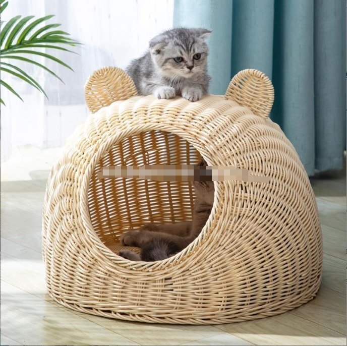 - 籐編み猫小屋四季通用半閉鎖式ペット小屋大猫床別荘夏猫冷窩冷却用品(50*50)は20斤以上の猫に適している