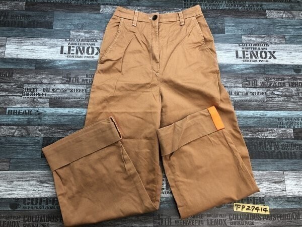 - ZARA WOMAN ザラウーマン レディース ロールアップパンツ 裾蛍光テープ 2 茶キャメル