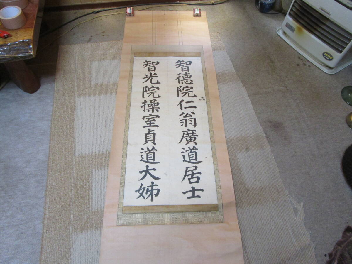 > [模写] 箱付 掛軸 紙本 書 浄土真宗僧侶 三洲長英 法名 書部分サイズ縦約85.2cm横約38.9cm 追加画像有 ヤマト着払い